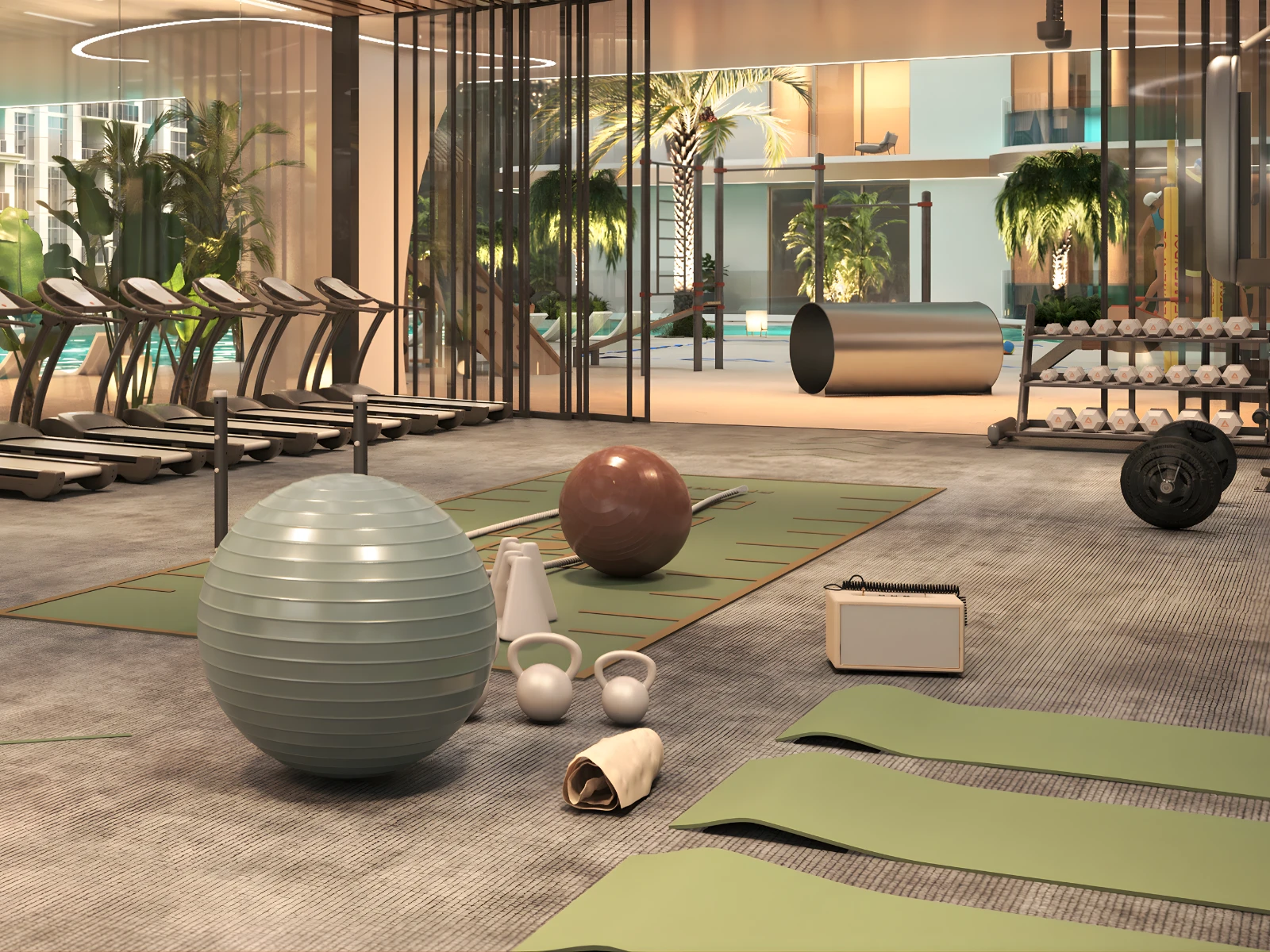 – Fully equipped indoor & outdoor gyms, paddle court, yoga area